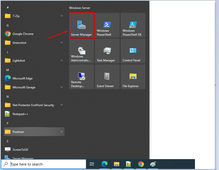 Click Start → Server Manager
