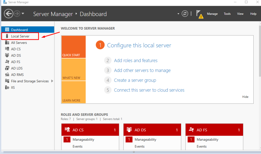 Click Local Server in the left menu