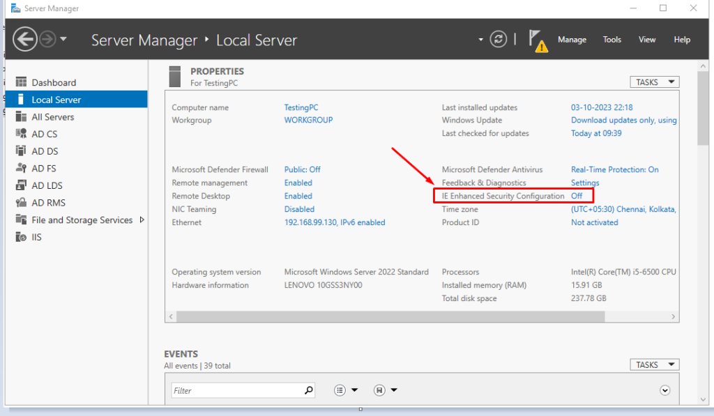 Disable Enhanced Security in Internet Explorer on Windows Server