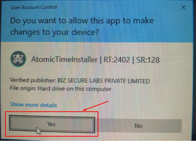 - When prompted by User Account Control, click “Yes” to allow the installer to make changes to your device.