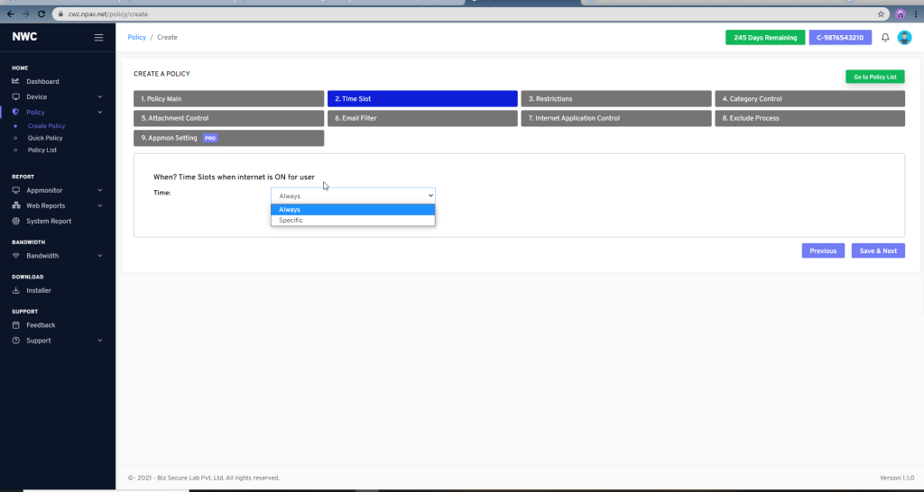 except Allow List with Time Slot - Click on save & Next button