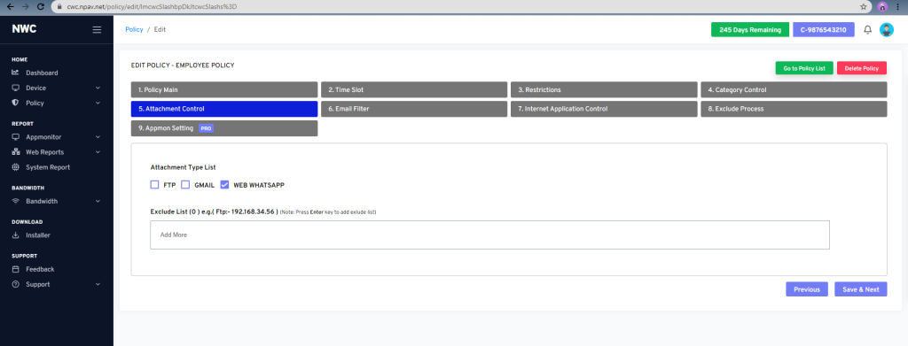 - FTP, GMAIL, Web Whatsapp tick checklist for attachment control
