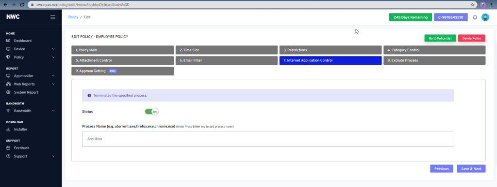 7. Internet Application Control