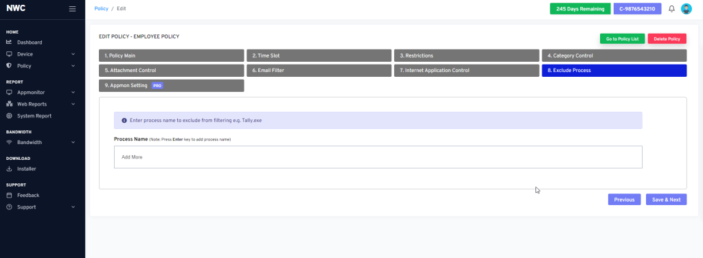 - Enter process name to exclude from filtering e.g. Tally.exe