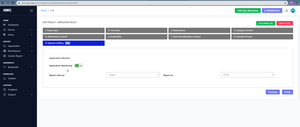 - Default Screenshot & Application monitoring should be OFF