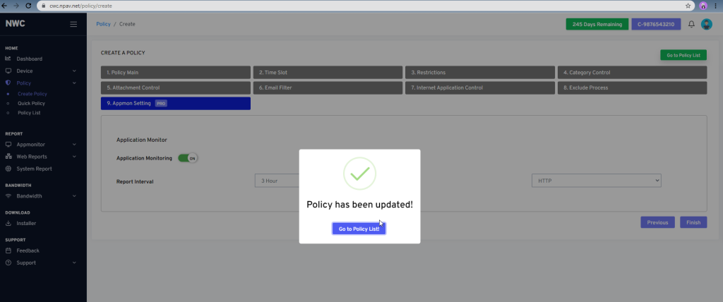 10.After click on Finish button Policy has been Created or Updated