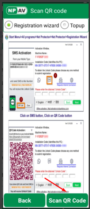 Open the Scan QR Code page on that showing two options through “Registration Wizard or Topup”