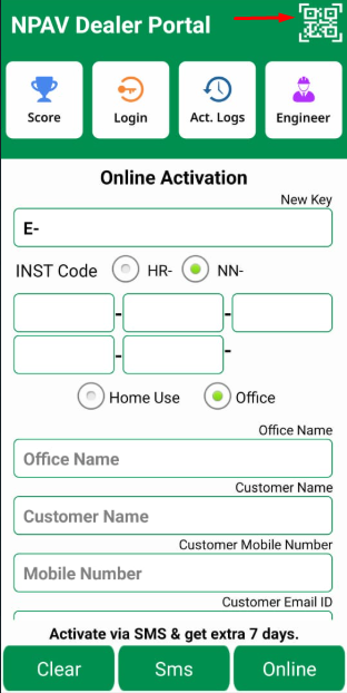 OpenĀ Dealer Portal App and click on QR Code (Top on right side)