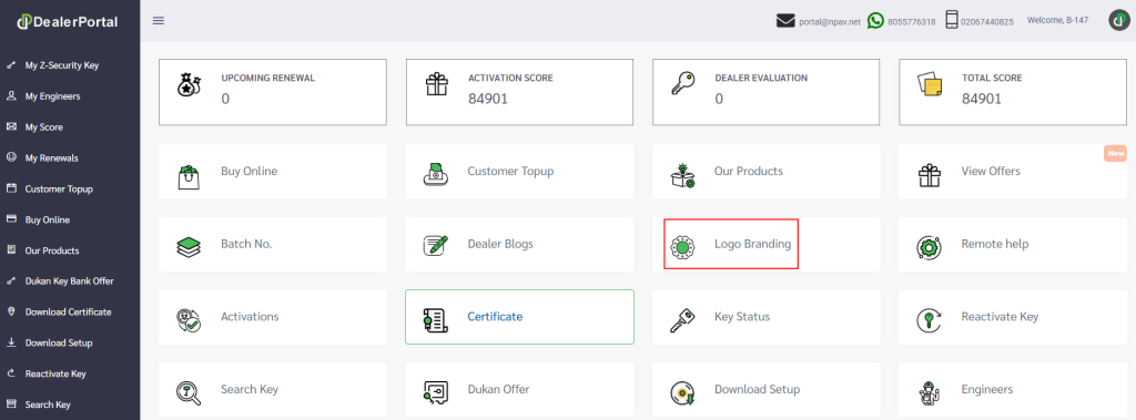 Access the dashboard, locate the ‘Dealer Logo Branding‘ option, and select it to proceed with creating or updating your branded installer.