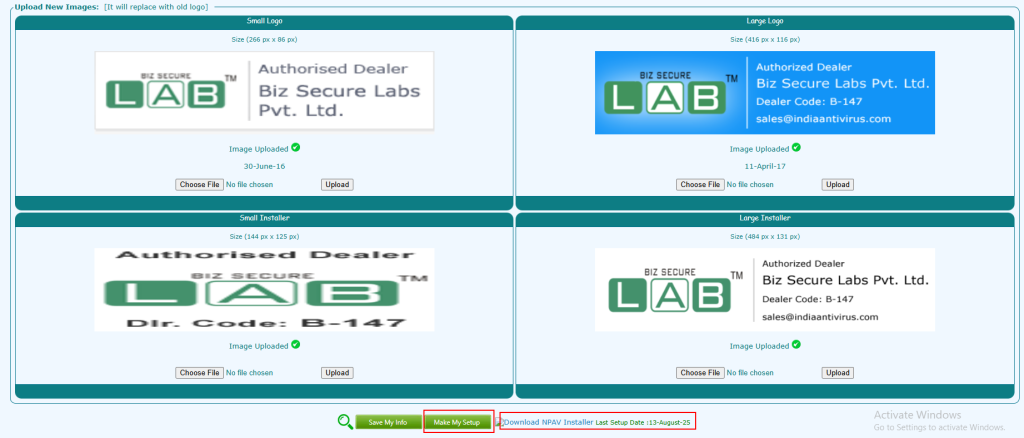 To update your dealer details, click the ‘Edit‘ button, modify the necessary information, and then click ‘Update‘ to save the changes. After updating, scroll to the bottom and click ‘Make My Setup‘ to download your customized dealer branding installer.