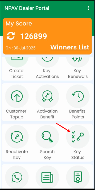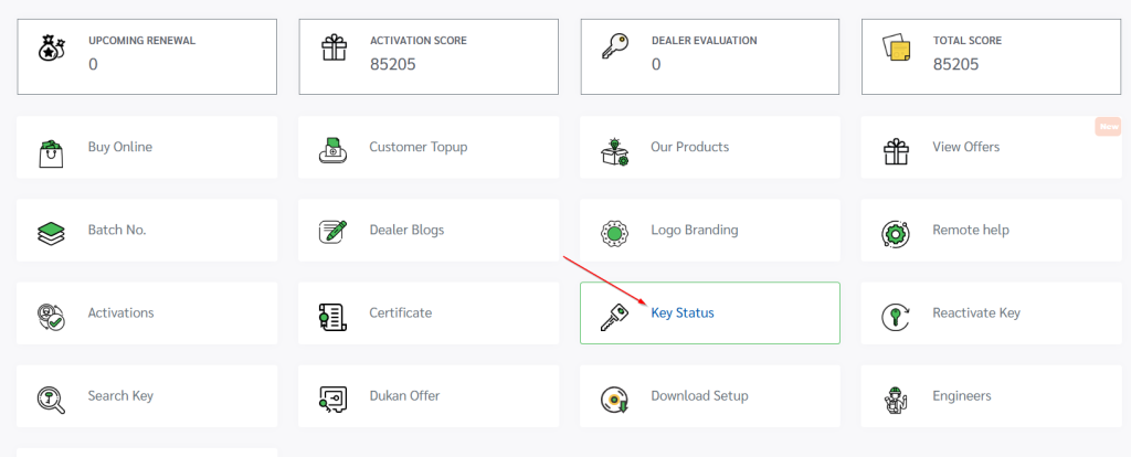 After logging into the dashboard, navigate to the ‘Key Status’ and click on it.