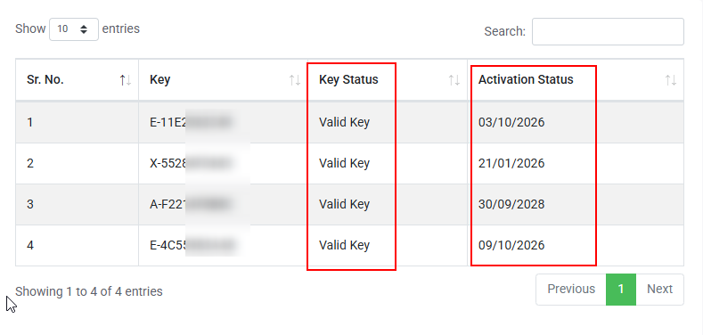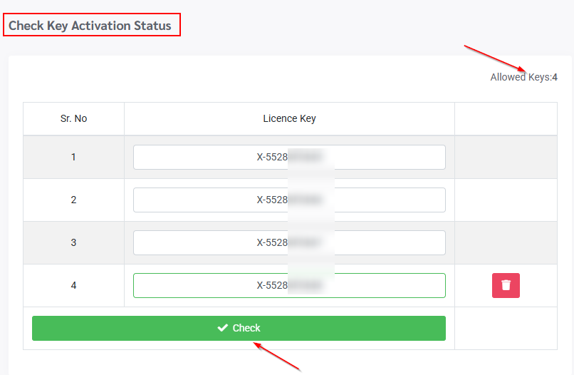 After clicking on ‘Key Status,’ enter up to four keys one by one. Then click the ‘Check’ button to view the status of the added keys.