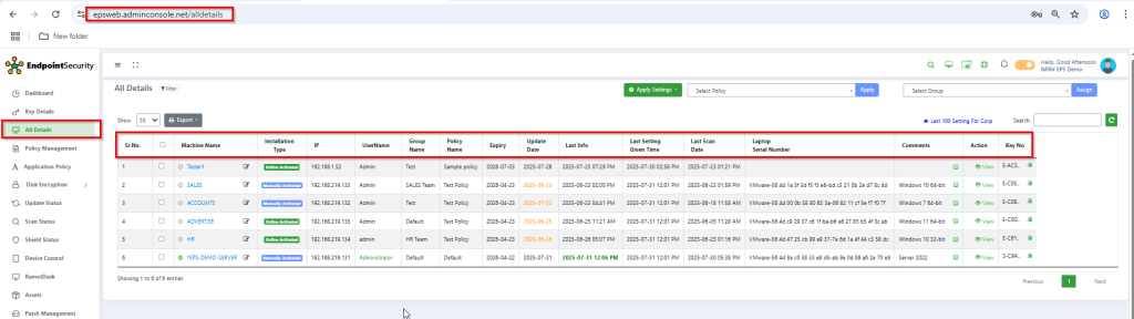 Policy Names Laptop Serial Numbers - Scanning Information:-