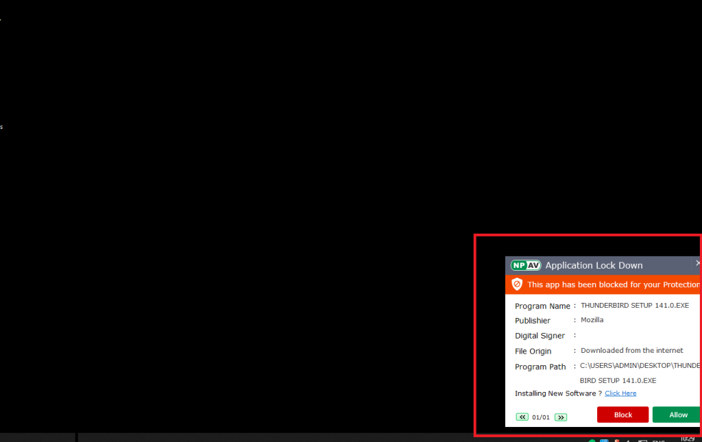 - Further any new application user tries to run will not be allowed to run and will be blocked.