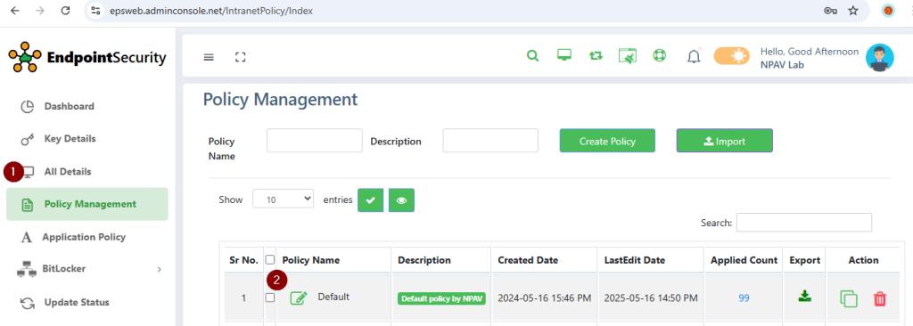 Select policy from Policy Management :-