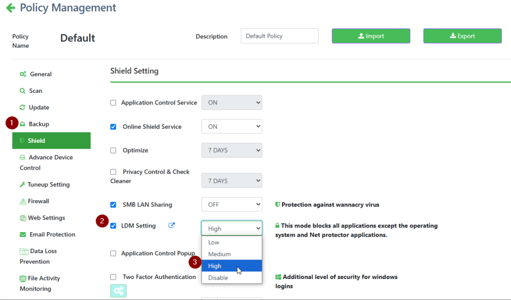 - This mode blocks all applications except the operating system and Net protector Endpoint security.