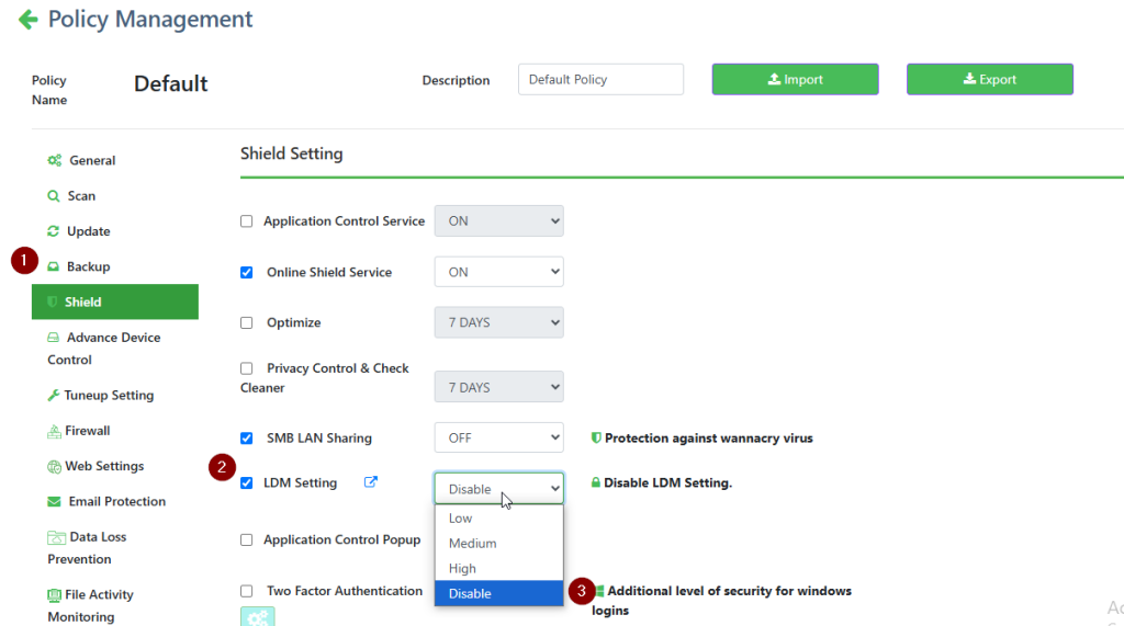 - Go to shield tab