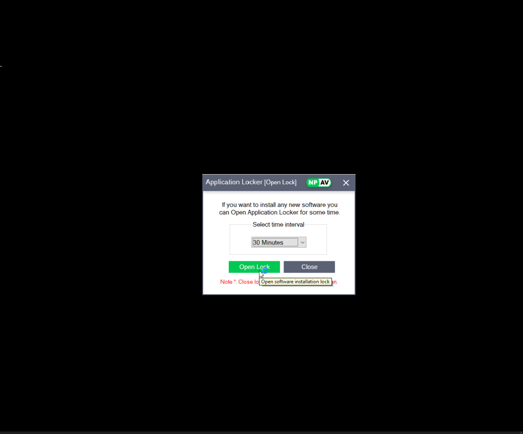 - Application locker window will open.