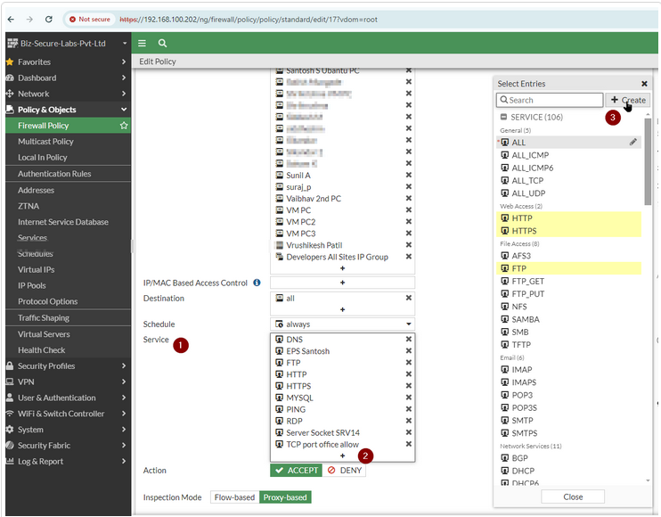 Step 2: Double-click on the main browsing policy and check and add new Service