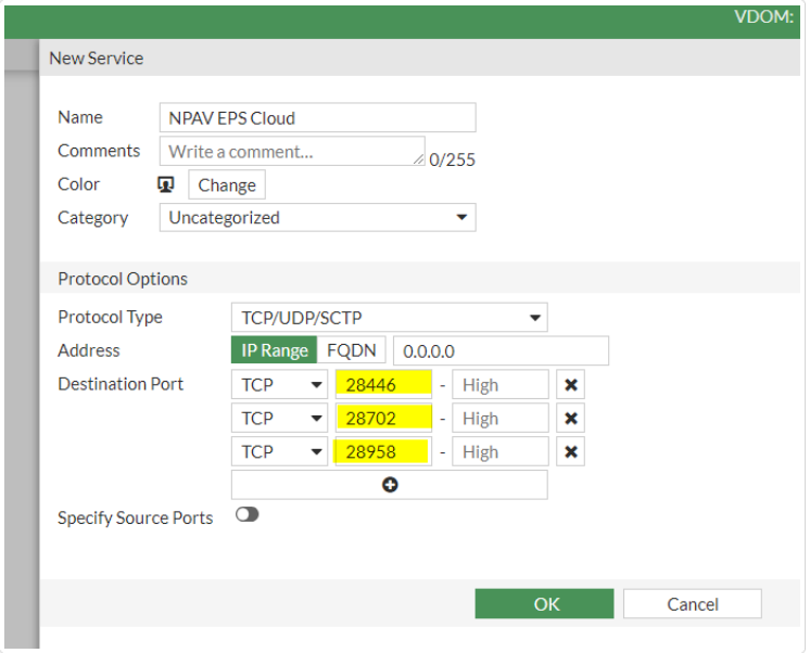 Add the ports in your Fortinet firewall then your client will receive the instant settings given from EPS Web Console.