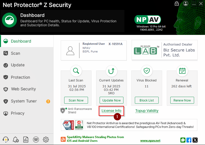 Step 8: After press “OK” button, Launching NPAV Dashboard.