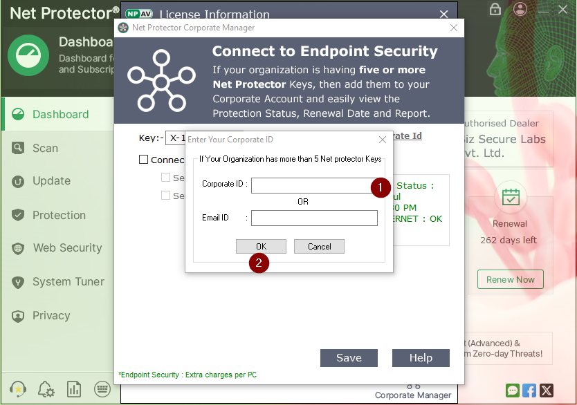 Follow the below steps to set corporate id & connect client machines with the end-point security server.