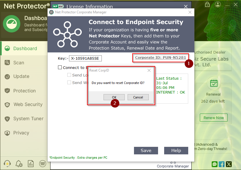 Step 5: If you accidentally added another corp id or your corp id changed to newer one then click on Corp Id, it will ask for reset corporate id popup message then click on the “OK” button.