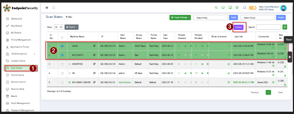 Step 2: Select the Scan tab from the Admin Console Dashboard.