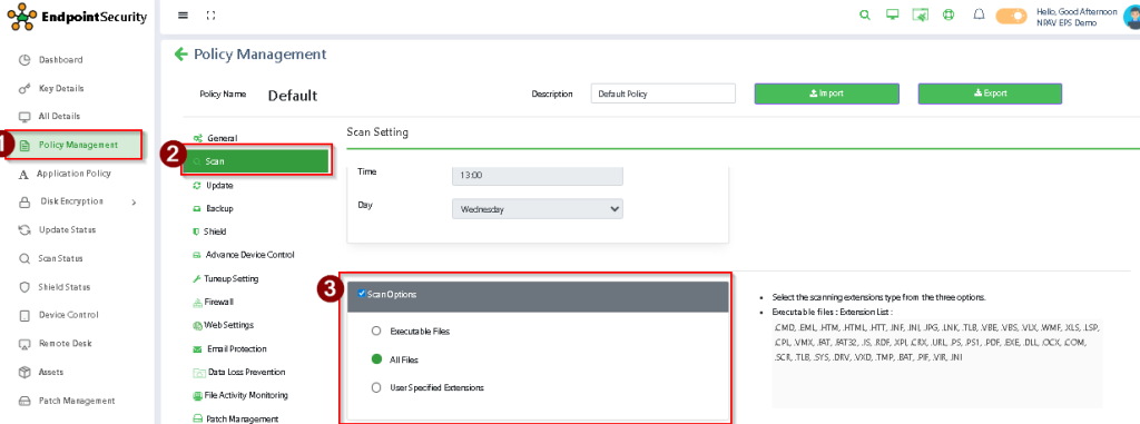Click on Scan options and select which file you want to scan that is Executable Files or All Files or User Specified Extension.
