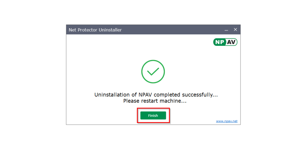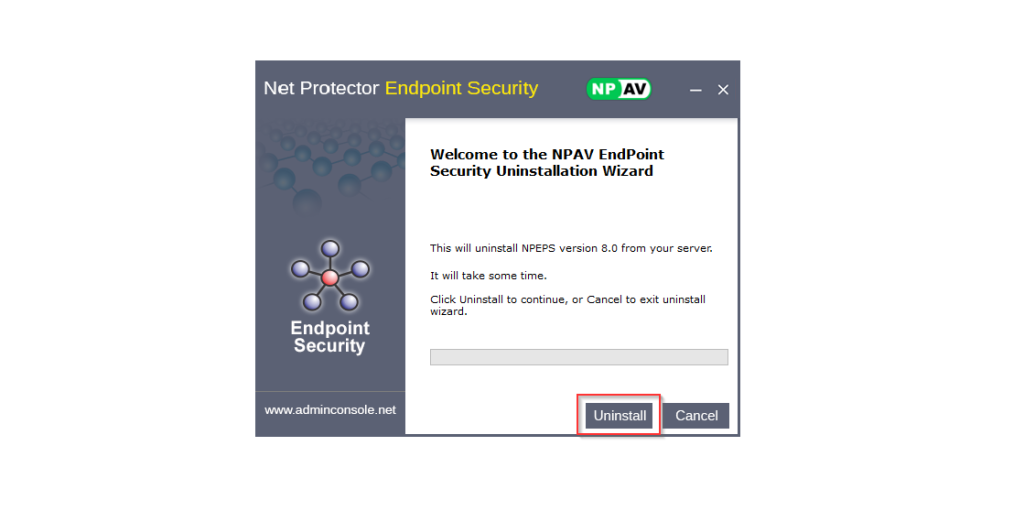 Step 3 : Click on Uninstall on Net Protector End Point Security Window.