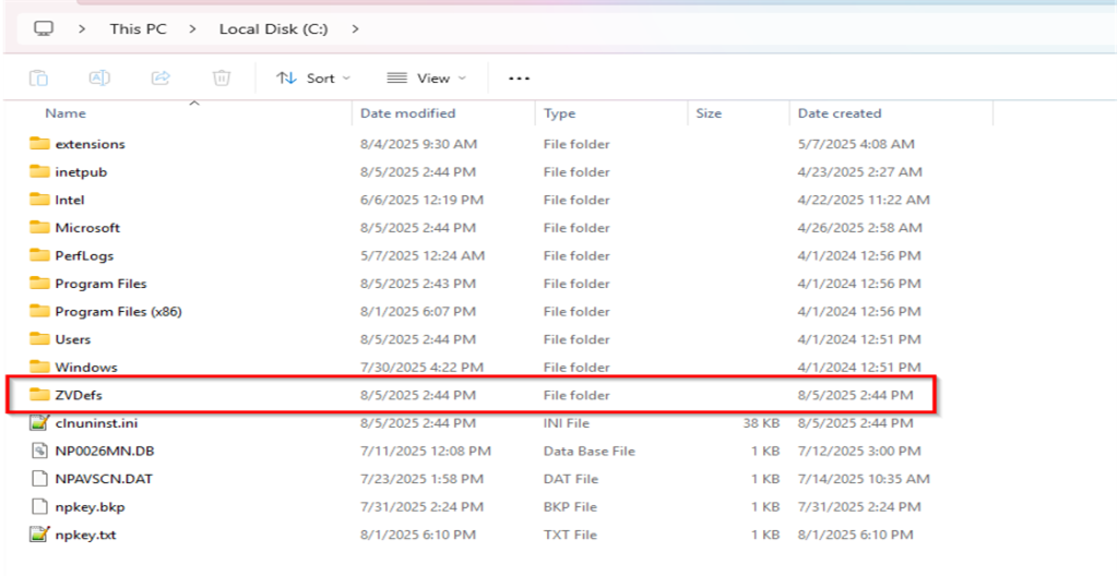Step 12 : Go to “C” drive and delete “ZVDefs” folder