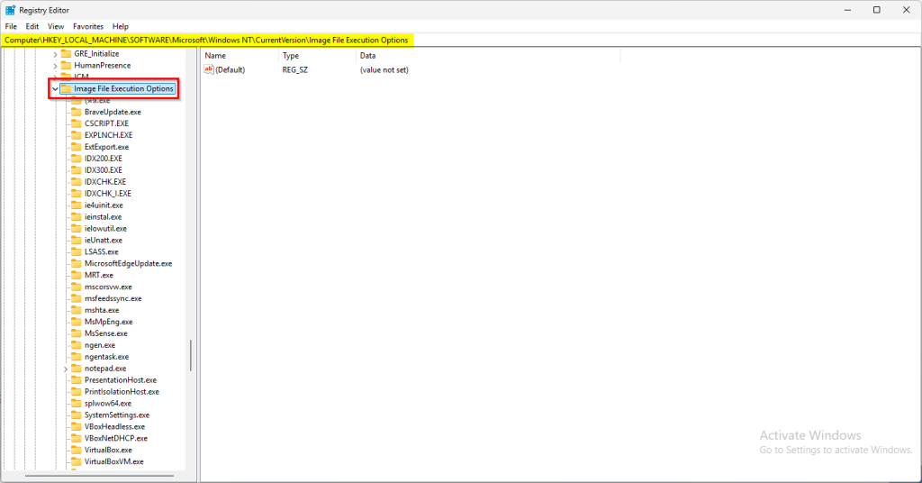 a. Computer\HKEY_LOCAL_MACHINE\SOFTWARE\WOW6432Node\Microsoft\Windows NT\CurrentVersion\Image File Execution Options