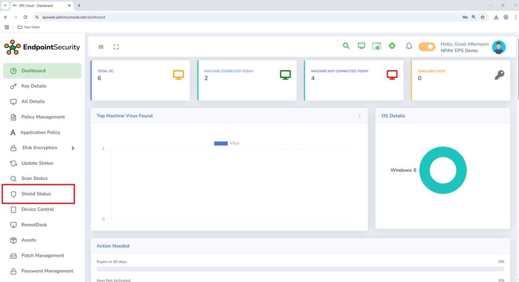 Following are the simple steps to use the Shield from Admin Console (EPS).