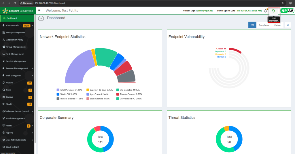 Step 1 : Go to User information tab of Admin Console Dashboard.