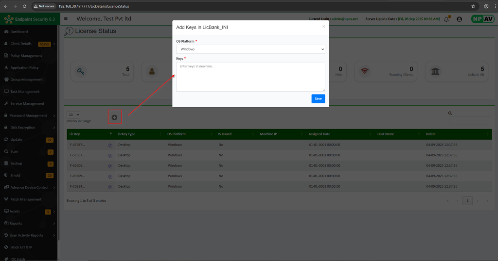 Step 4 : Click on Plus (+) icon , ‘add keys in licBank_INI’ will open