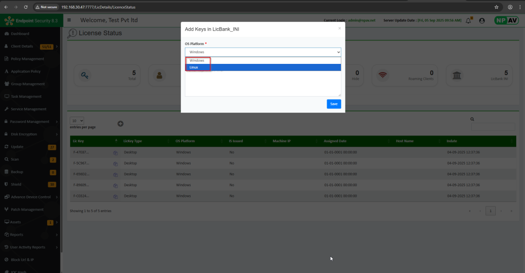 Step 5 : Select ‘windwos or linux ‘ according to add keys on which os.