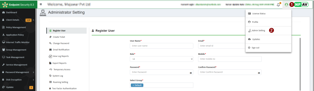 Login into Net Protector Endpoint Security Intranet Web Console