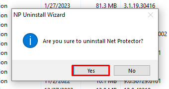 Steps 3: Click on “Yes” NP Uninstall Wizard popup.