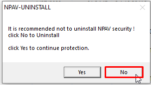Steps 4: Click on “No” NPAV Uninstall popup.