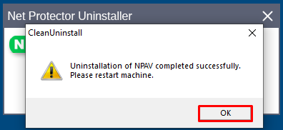 Steps 7: Click on ok uninstallation of NPAV steps.