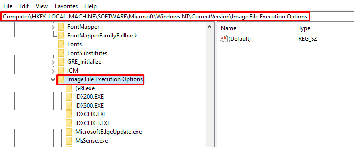 a. Computer\HKEY_LOCAL_MACHINE\SOFTWARE\WOW6432Node\Microsoft\Windows NT\CurrentVersion\Image File Execution Options