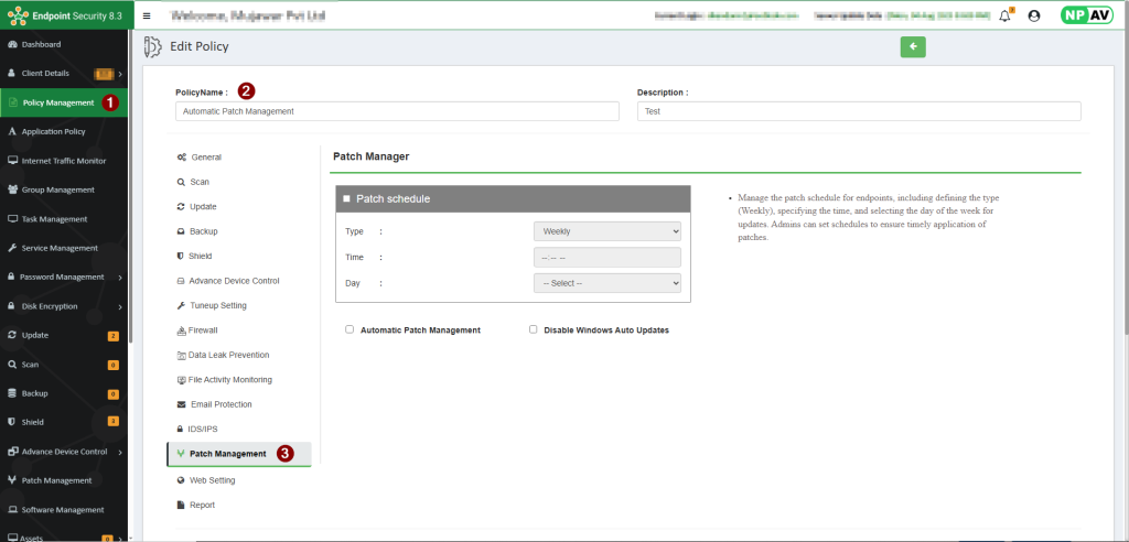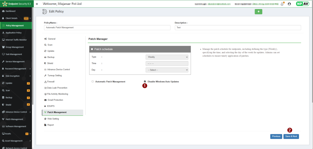 There are Three Setting’s in Patch Management Like Patch Schedule, Automatic Patch Management & Disable Windows Auto Updates