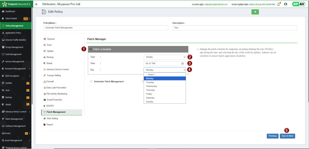 · Admin can select the patch scanning day and time on client systems accordingly as per convenience on weekly basis.