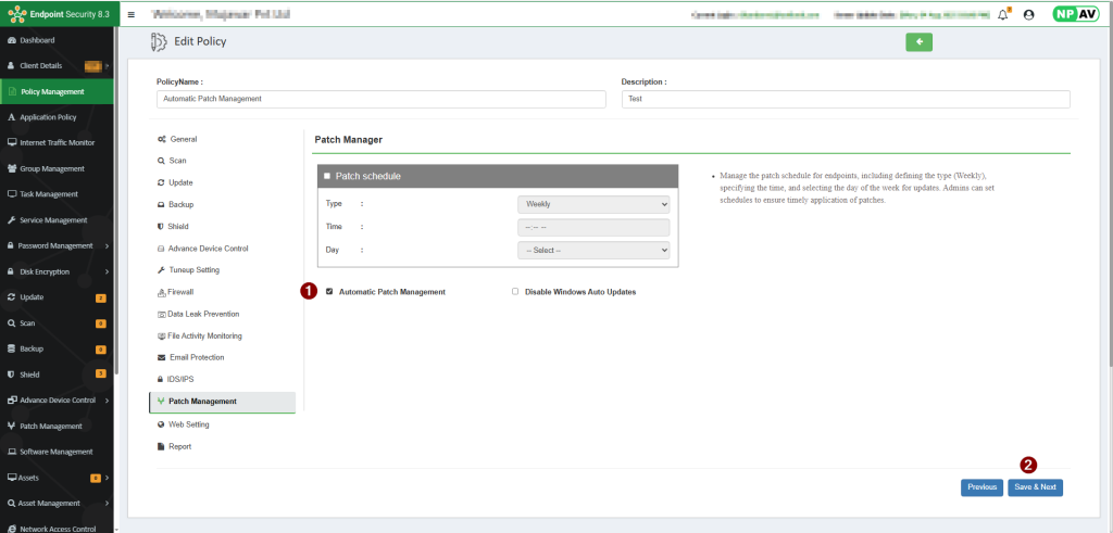 2. Automatic Patch Management: Automatic Patch Management setting work as an Install to Next One Updated patch on client systems.