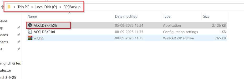 Step 1 : Run exe from it’s path – C:\EPSBackup\ACCLDBKP.EXE
