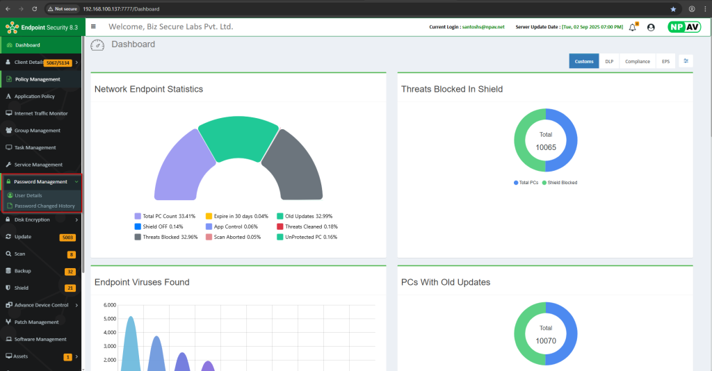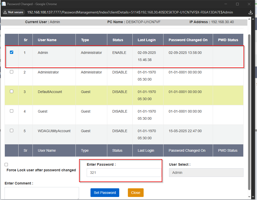 Now system admin can provide or change windows login password of users from Admin Console Server.