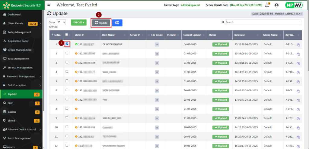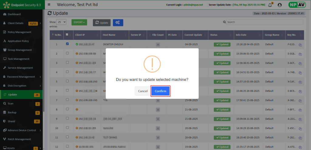 Go to Update Tab of Admin Console, and Select Specified machine or all machines.