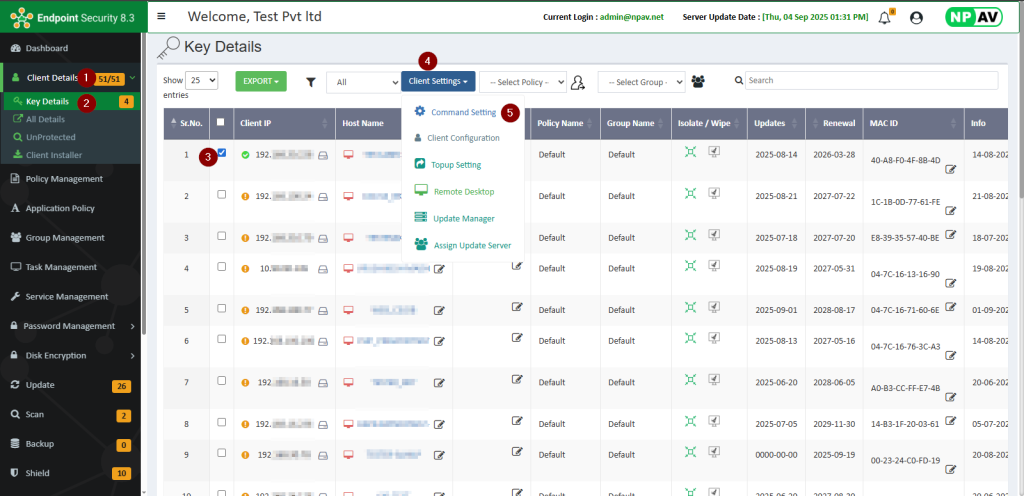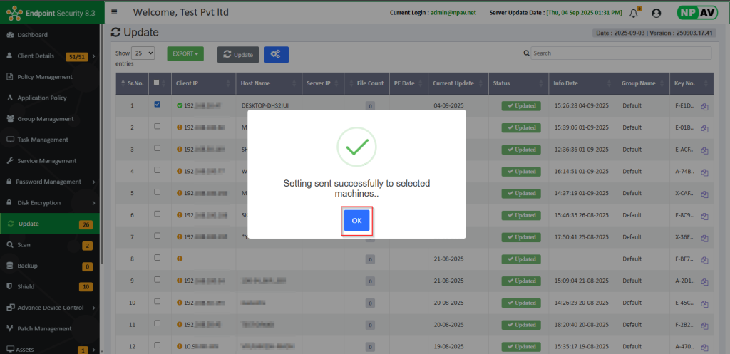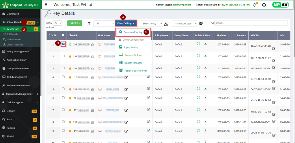 Go to Client Settings -> Command Setting -> Update now and Click on Save.