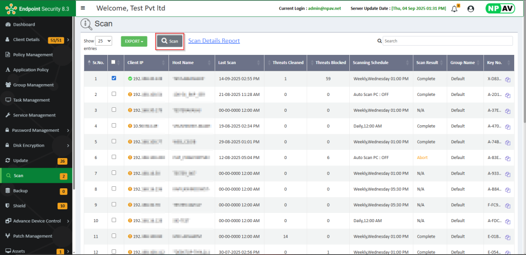 Go to Scan Tab of Admin Console, and Select Specified machine or all machines.