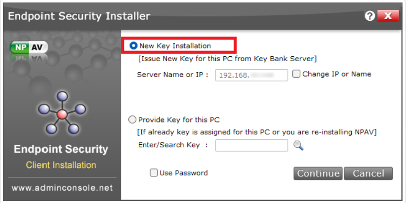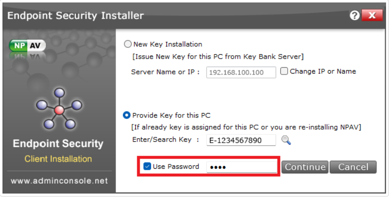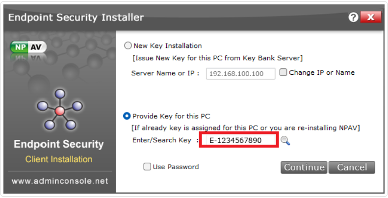 - User can provide NPAV key manually or click on the search icon to get the previous assigned key from NPAV EPS Server. Here user don’t need to remember NPAV key for the particular machine.